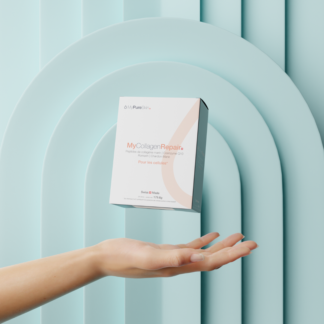 MyCollagenRepair soutient la régénération cellulaire, renforce les défenses antioxydantes et préserve la jeunesse des tissus. Sa formule cliniquement appuyée associe notamment des peptides de collagène, la coenzyme Q10, la vitamine C et le romarin pour un effet réparateur ciblé, jusqu’au cœur des cellules.
